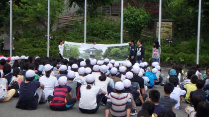 嵯峨小学校の学校紹介は,バッチリでした。大きくプリントした歴史ある嵯峨小学校本館の外観には,驚きの声があがっていました!200名ほどの人前でも堂々と話ができる姿はさすがです!とても頼もしかったです。