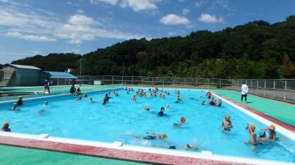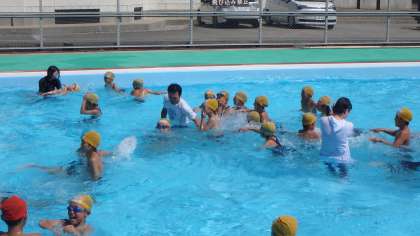 太陽が顔を出し,夏を思い出させてくれました。みさきの家のプールは,本日嵯峨小学校4年生に貸切状態!楽しそうな声が山々にこだましています。普段の学習とはちがって自由に水と親しむことができました。担任もいっしょに中に入り,子どもたちとふれあいのひとときを過ごしていました。とても微笑ましい光景でした♪