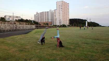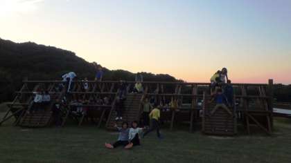 みんなの協力で野外炊事が早く終わりました。入浴準備の時間まで15分あります。この15分間は子どもたちがつくり出した時間です。その15分間はフリータイムとなり,芝生広場で遊ぶことができました。これは予定にないことです。活動の時間は決められていますが,その時間をどのように使うかによって,できることが増えたり,減ったりすることをみさきの家に来て思い知りました。初日から,時間を使いすぎることが多かった子どもたちですが,ここにきて時間をつくり出せたことは大きな成長だと思います。