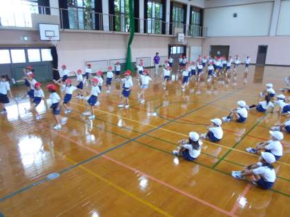 今日も運動会の練習をしました。体育館でダンスの細かい振り付けをしたり,運動場で自分の踊る場所を確認したりしました。授業が終わってからの,給食を食べてからや昼休みには「先生!曲流してください。」とやる気いっぱいです。