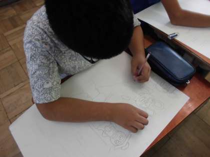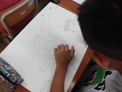 自分の好きな場面のイメージを膨らませて下絵を描き始めました。