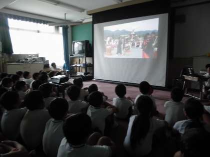 嵯峨中パレードの意義を説明してもらったり,昨年度の様子のDVDを見たりしました。ちょぴり先にある中学生の世界をのぞくことで,いま目の前にある小学校生活をさらに満喫してほしいと思います。