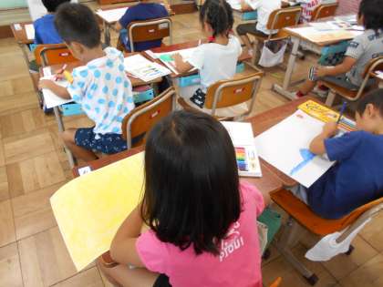 「お話を絵にするコンクール」には,全校児童が取り組むのですが,いよいよ1年生もスタートしました。