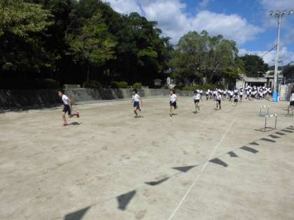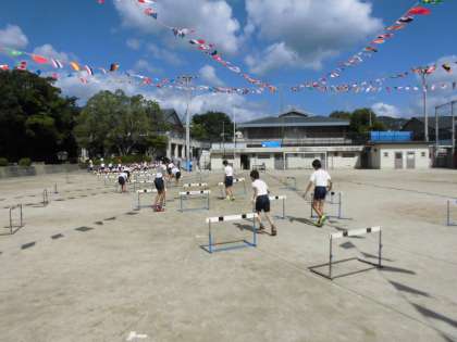 ハードル走と100m走の練習をしました。この日はハードル調節係の人を入れての練習です。本番当日は走る人はもちろんですが,ハードル走を陰で支えるハードル調節係の人の動きにもぜひご注目ください。