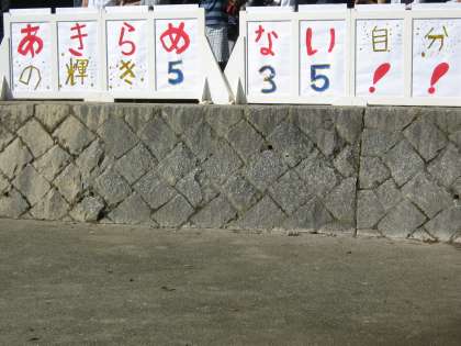 今年のスローガンは,「あきらめない 自分の輝き 535!!」です。最後まであきらめずに精一杯頑張ってほしいと願っています。