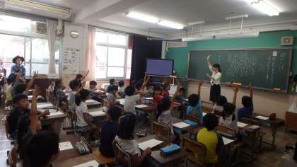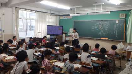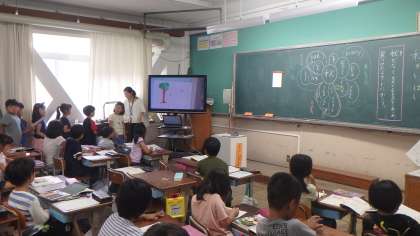 2年生は,国語科の学習でした。授業がはじまると「まっかな秋」の元気な群読が響き渡りました。秋のイメージをふくらませた後,自分がみつけた秋をカードに書きました。絵と言葉を使って,自分の伝えたいことを表現していました。
