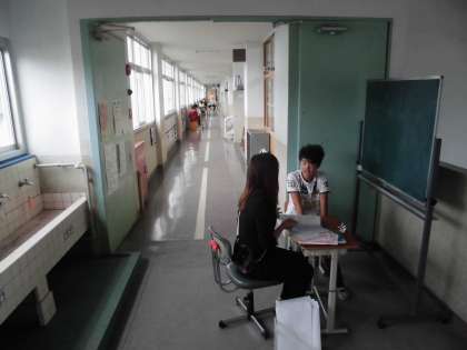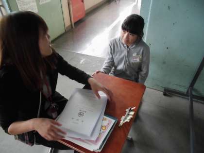 各担任が一人一人に前期の学校生活をふりかえりながら渡していきました。