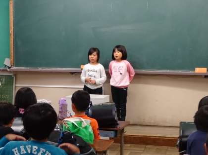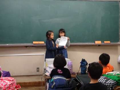 写真は帰りの会での一コマ。