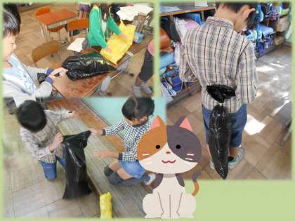3年生は『ねこ』になるので,しっぽを作ります。思い思いのデザインで,かわいいしっぽが出来上がっていきます。本番につけて,かわいく演じます。お楽しみに!