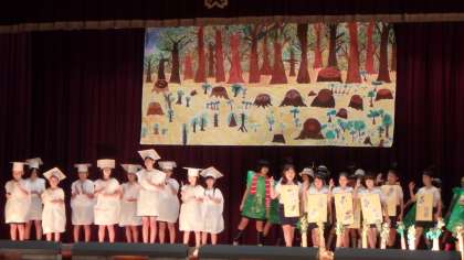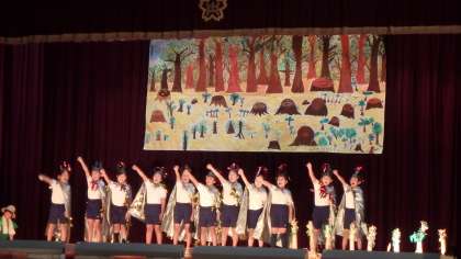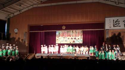 1年生のはじめのことばに続き,オープニングは4年生が見事に務めてくれました!難しいリズムに合わせて,子どもたちの元気で美しい声が体育館に響きました。環境問題をテーマにした考えさせられる内容でした。