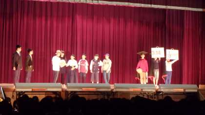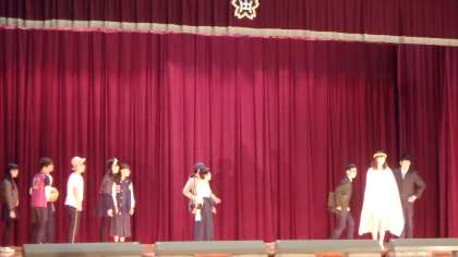 6年1組は,クラスで考えたオリジナル劇でした。自分たちの住む星を守るために,5つの宝物を集めにユニークな星へ旅する子どもたち。各所に散りばめられた笑いの数々に会場は大爆笑でした!クラスのいい雰囲気が伝わってきました。