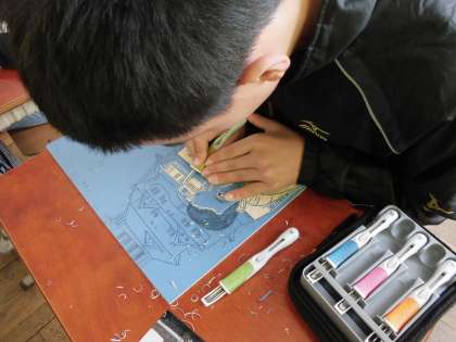 版画ですが,細かな表現にチャレンジしている児童も多く完成が楽しみです。