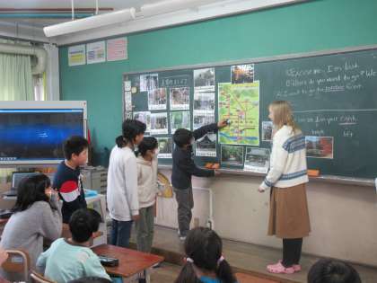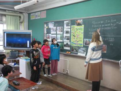 今日は,単元の最後の時間として,道に迷ったALTの先生が行きたい場所にいけるように道案内をしました。今までに学習した言葉を使って,英語で道案内をすることができました。