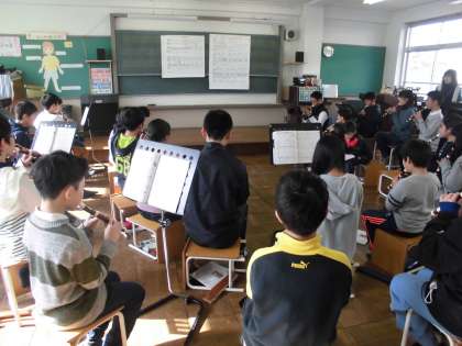 はじめに,冬休みの課題曲をリコーダーで演奏しました。