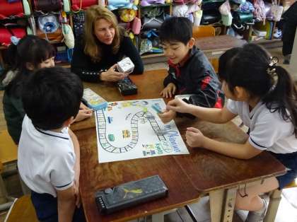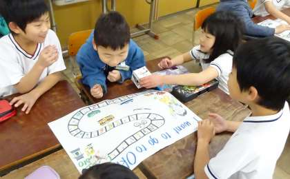 久しぶりの英語はすごろくゲームで「乗り物」を表す英語表現に親しみました。