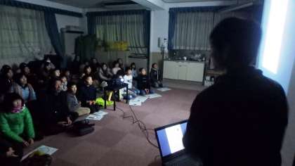 学校運営協議会のふれあい活動企画推進委員会主催の「親と子のわくわく天体観望会」がありました。例年になく好天に恵まれ,まだ空が明るいうちから半月が白く光っていました。夜が訪れると星も広がってきました。まずは,青少年科学センターにおられた☆星のスペシャリスト☆からお話をうかがいました。