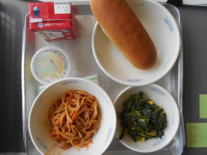 メニューは子どもたちに人気のスパゲティーで,みんな大喜びで食べていました。