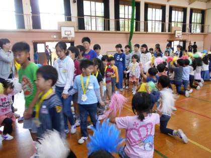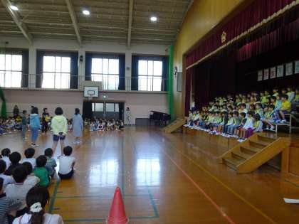 全校児童が集まって,1年生をむかえる会を開いてもらいました。