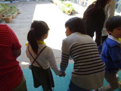 優しい6年生は,ドキドキしている1年生に,笑顔で声をかけてくれました。