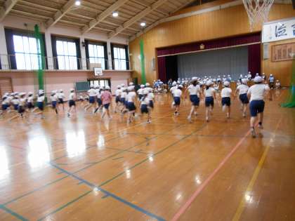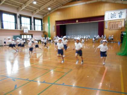 リズムにペースを合わせて走ることが難しかったようで,走り終わってから「最初にとばしすぎたから体力が最後までもたなかった。」「もうちょっと走れたのに。」と悔しがる子もいました。しかし,気持ちがきれずに今出せる力を出して走りきった子もたくさんいて,疲れながらも満足した顔をしていました。