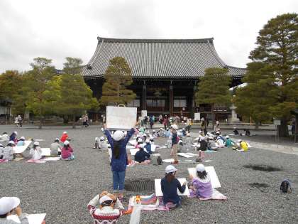 清凉寺の本堂をどの角度から描くのかということも自分たちで決めて,コンテで描きました。細かいところは近くまで見に行ったり,自分が描いたものと見比べたりするなど,しっかり見て描くことができました。
