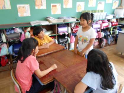 国語科の授業では,「よい聞き手になろう」の学習をしています。今日は、グループトークをして学習したことが実践できるかやってみました。話し手は,友だちに伝えたいこを組み立てを考えて話し、聞き手は,話の中心を捉えて自分と比べながら聞き,質問や感想を伝え合いました。これからの学習にも生かしてほしいと思います。