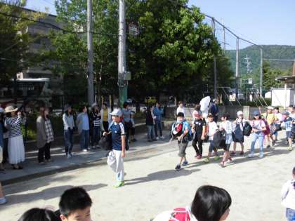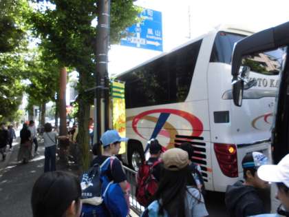 子どもたちはみんな笑顔でバスに乗り込んでいます。