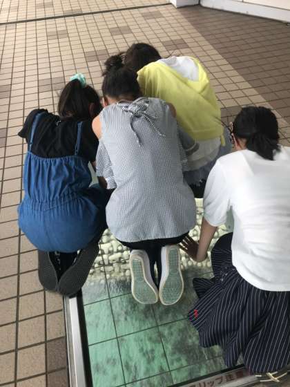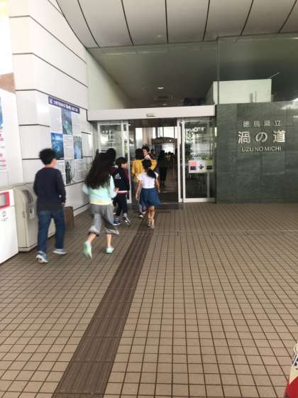 渦の道にいきました。ガラス張りの通路から下に見える海は、澄んでいて魚の泳ぐ様子まで見ることができました。