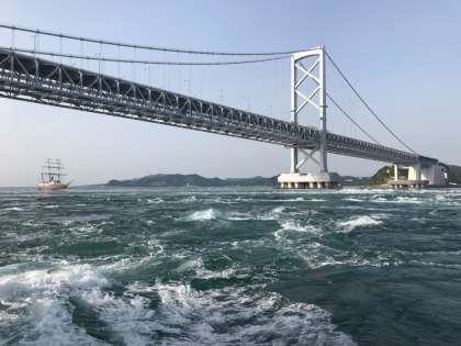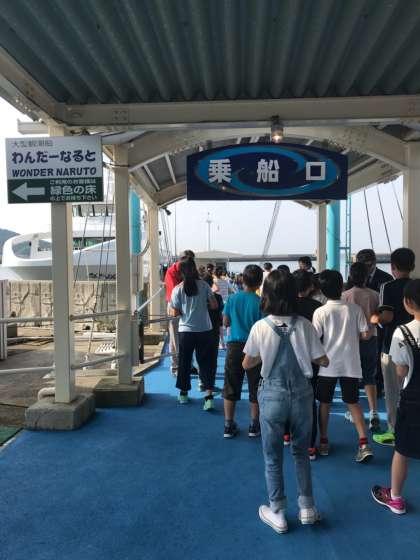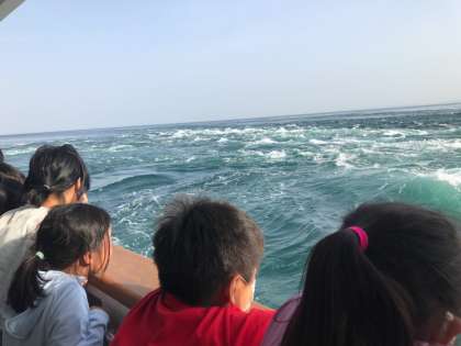 「わんだーなると」に乗りました。船から見る渦潮の迫力に子どもたちはびっくり驚いていました。船が傾いたり、水しぶきがかかったり間近で渦潮を体験できました。