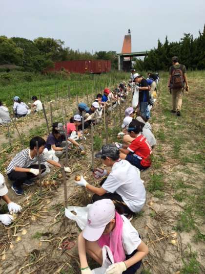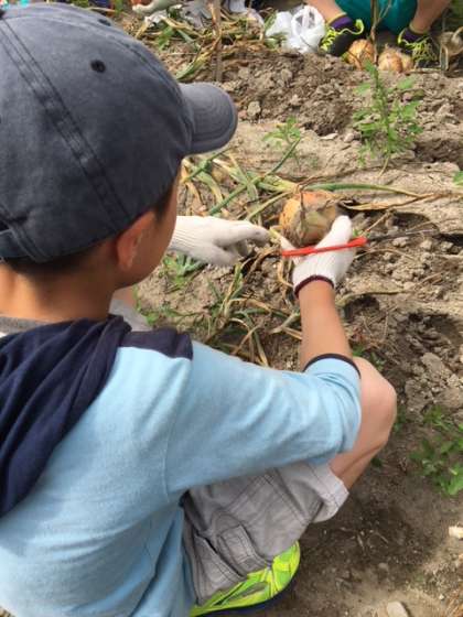 まずはどろんこ体験です!雨のおかげで大きな玉ねぎがたくさん発掘されています。