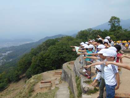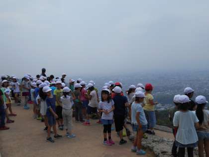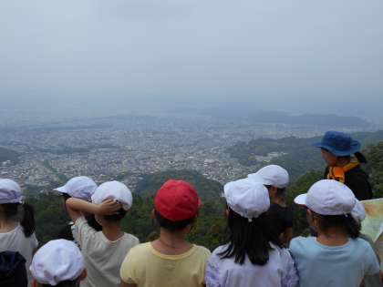お弁当を食べた後には,大文字山の上から京都市内の様子を観察しました。