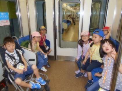 市バス・地下鉄に乗って,国際会館前から宝ヶ池公園の中を歩いて,子どもの楽園までいきました。新緑がきれいで,とても気持ちよかったです。
