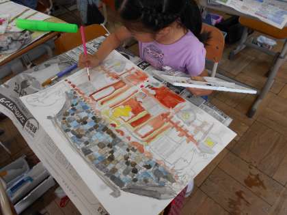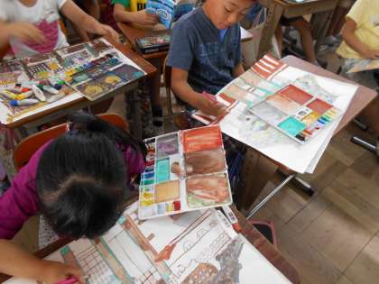写生会で描いた清凉寺本堂の色塗りがいよいよ完成に近づいてきました。