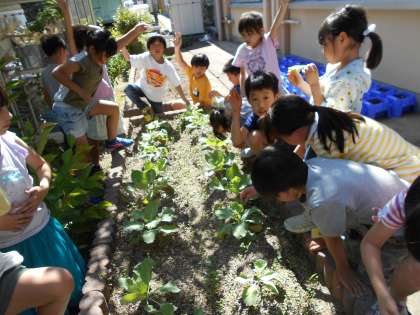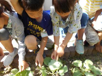 今日は,自分たちの植えたキャベツ畑に行ってモンシロチョウのたまごを探しました。