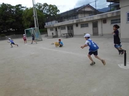 最近は,野球をして遊んだり,テレビで見たりするのさえ経験のない児童が多くハンドベースを楽しむ前にまず,ルールをおぼえて小さなボールに慣れるのに苦労しています。