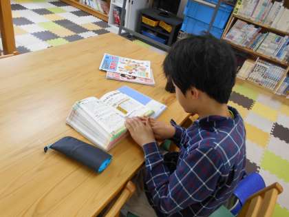 放課後の図書館に訪れ,ステップアップノートをしていました。