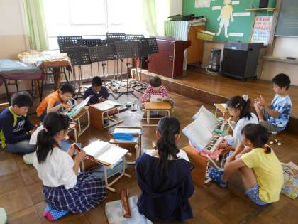 グループに分かれて「ラバースコンチェルト」の合奏に挑戦しました。