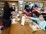 入所式を終え子ども達は,部屋に荷物を運びこみました。荷物整理をしながら「おなかへった〜。」の声が。よっぽどお腹が減っていたのか,みんな集合時刻より早く食堂に集まりました。今日のお昼ごはんは,ラーメンかてりとり丼を選べます。さらにおかずのバイキングもついています。どれを食べようか悩んでいる子,友だちを待ちながら,みんなのお茶をついでくれている子,楽しい食事の時間が始まりました。