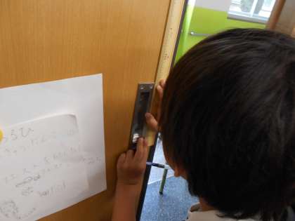筆箱の横の長さをはかったり,教室の取っ手をはかったり