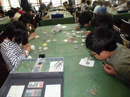 次々に自分だけのオリジナル作品が作り上げられていきます。子どもたちはどの色を使おうかと考えています。特別のビーズもうまく使い作品を作っている子どもたちもいました。