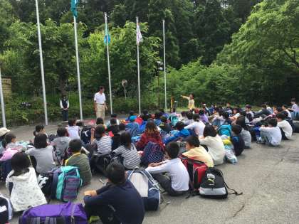 退所式です。山の家の先生が感想を聞くとたくさんの子どもたちが発表していました。いろいろな経験をさせてくれた山の家に感謝して,学校に戻ります。