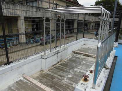 6年生のがんばりで,汚れていたプールがピカピカに輝いています。シャワーもとてもきれいです。さすがは,嵯峨小学校の最高学年のみなさんです。本当にありがとう。