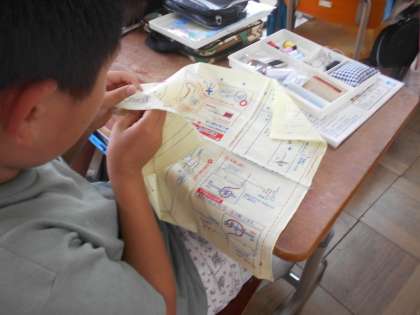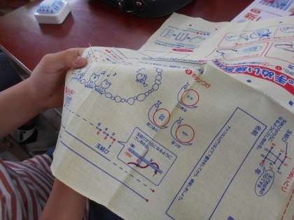 練習布の印に合わせて玉止めをしましたが,子どもたちは「うまくできた!」と言いながら取り組んでいました。
