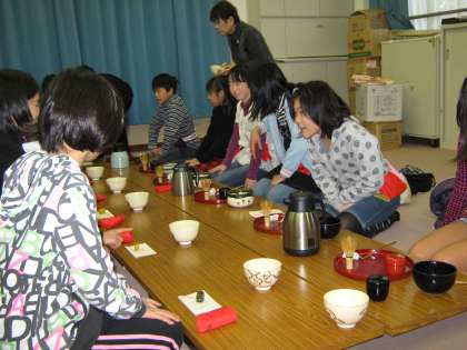 写真は「伝統文化クラブ」がお茶のお手前を学んでいる様子です。伝統文化が根付く嵯峨ならではの光景ではないでしょうか。