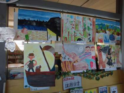 11月に入って,図書館入ってすぐのところにはお話の絵を飾っています。