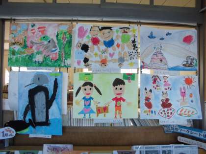 各学級一点ずつなので限られた作品だけですが,図書館が華やかになっています。