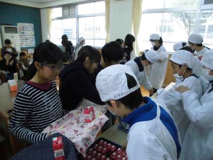 今日の給食は,ごはん・牛乳・なま節のしょうが煮・ほうれん草とはくさいのごま煮・いものこ汁でした。ランチルームでは,6年1組が給食を食べました。なま節のしょうが煮ができるまでの様子を写真やイラストで紹介しました。「ごはんと合う!」,「味がしみこんでおいしい。」など,いろんな声が聞こえてきました。