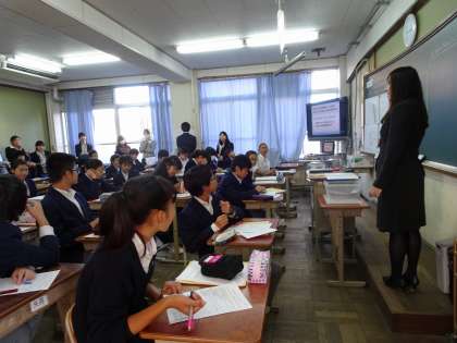 昨日,京都嵯峨学園の研修の一つとして,嵯峨中・嵯峨小・嵐山小・広沢小の教員が集まり中学校の先生の授業を参観し,事後に話し合いを行いました。話し合いの中では,「小学校での力が土台となり,中学校でさらに伸びている。」「小中共に伸ばしていきたい力とは。」など真剣に話し合いを行いました。今後も,京都嵯峨学園として小中一緒に取組を進めていきたいと考えています。
