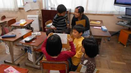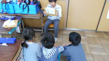 子どもたちは自分が作り上げた紙芝居を大切に読んでいました。