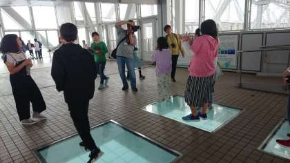 渦の道では,おそるおそるのぞいたガラスの板を通して見える海面の波の様子にまたまた,歓声をあげていました。
